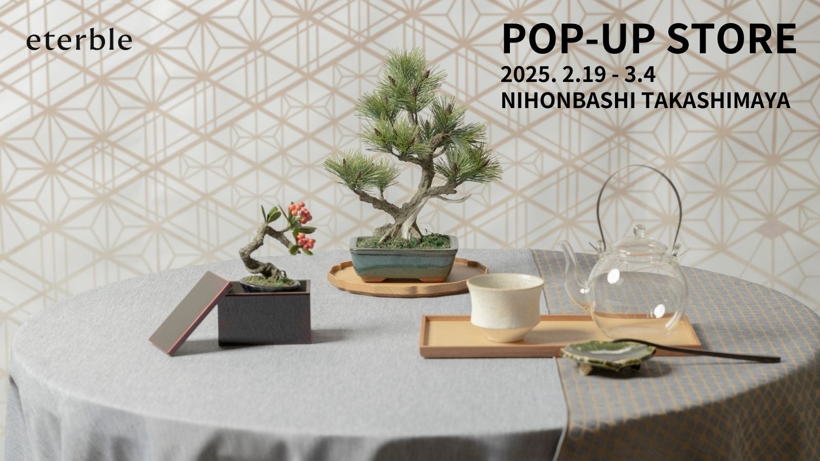 ホテルや結婚式場向けのテーブルクロスやパーティーアイテムレンタルサービスを行う株式会社ワールドサービス(大阪府泉佐野市、取締役社長:茶谷圭祐)が手がける、サステナブル・テーブルウェアブランドeterble(エターブル)は、日本橋髙島屋 本館2階 ギャラリー ル シック(ライフスタイルデザインショップ)にて、特別展示販売会を開催いたします。期間は2025年2月19日(水)から3月4日(火)まで。本イベントでは、日本の伝統文化を現代のライフスタイルに取り入れる新たな試みとして、「茶道」や「クラフト盆栽」をテーマにした展示を行います。