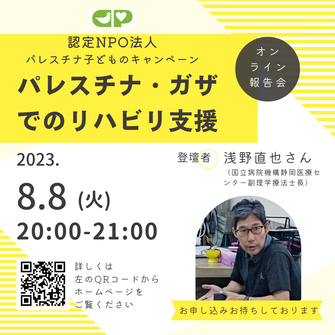 8/8パレスチナ子どものキャンペーン・オンライン報告会「パレスチナ・ガザでのリハビリ支援」