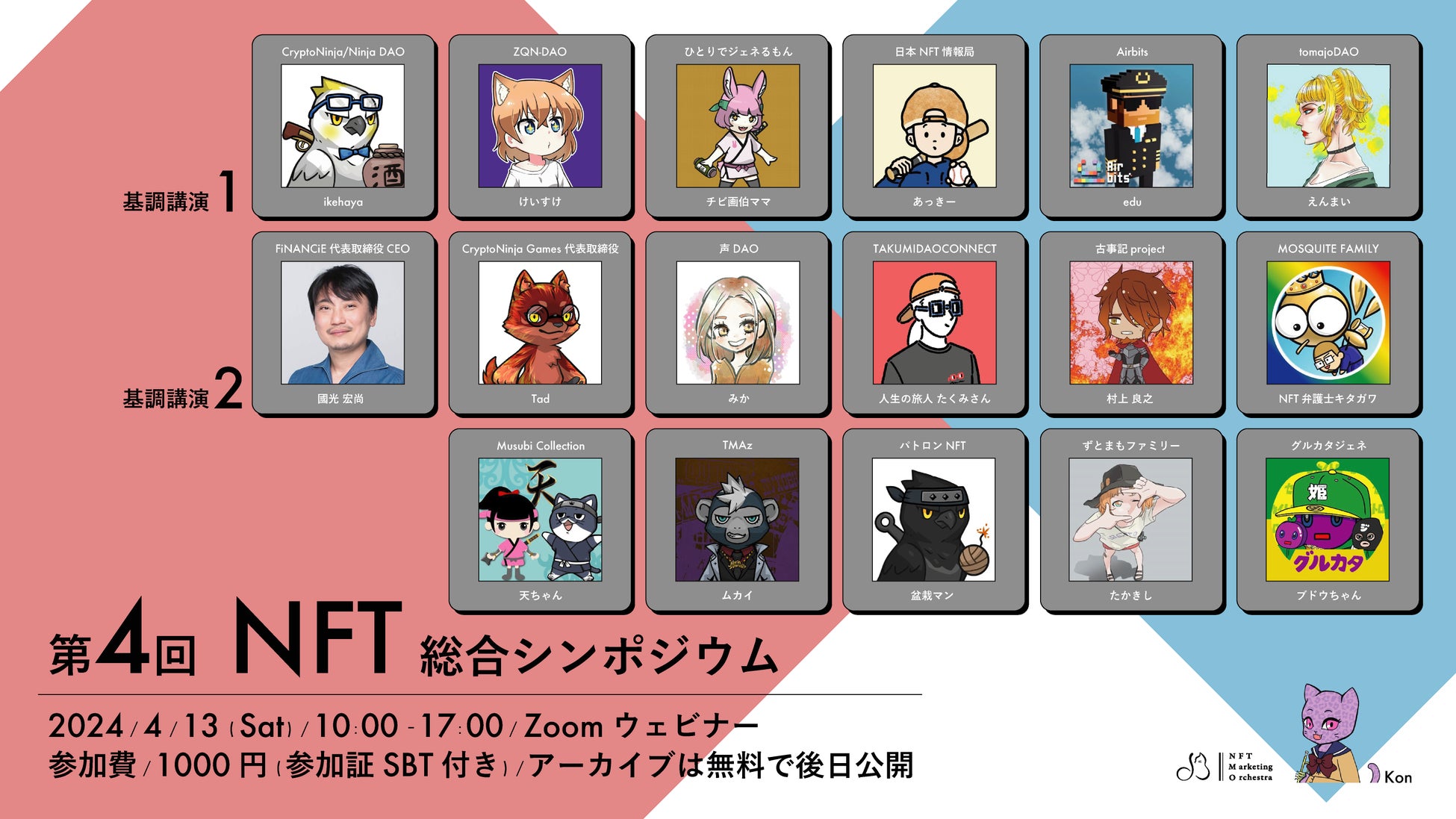 合同会社NFTオーケストラ(本社:東京都中央区)は、2024年4月13日(土)に総勢15組の国内NFTプロジェクトを集めた総合シンポジウムを開催いたします。