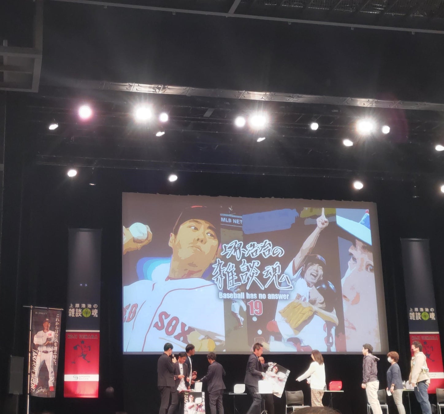 会場には出演者のグッズやユニフォームを身に着けた多くのファンが集まり、東北だけでなく全国各地からご来場いただきました。皆さまの笑顔や真剣に耳を傾ける姿、そして会場全体が一体となる熱気に包まれ、「上原浩治の雑談魂SPトークライブin仙台」へ協賛・参加できたことに、改めて感謝の思いを抱いております。