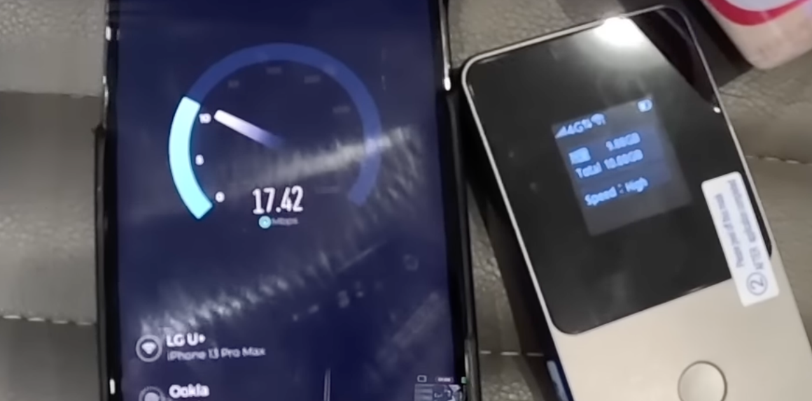 速度チェック! 地域や場所によっても速度は変わりますが、今回は空港内でチェックいただきました!