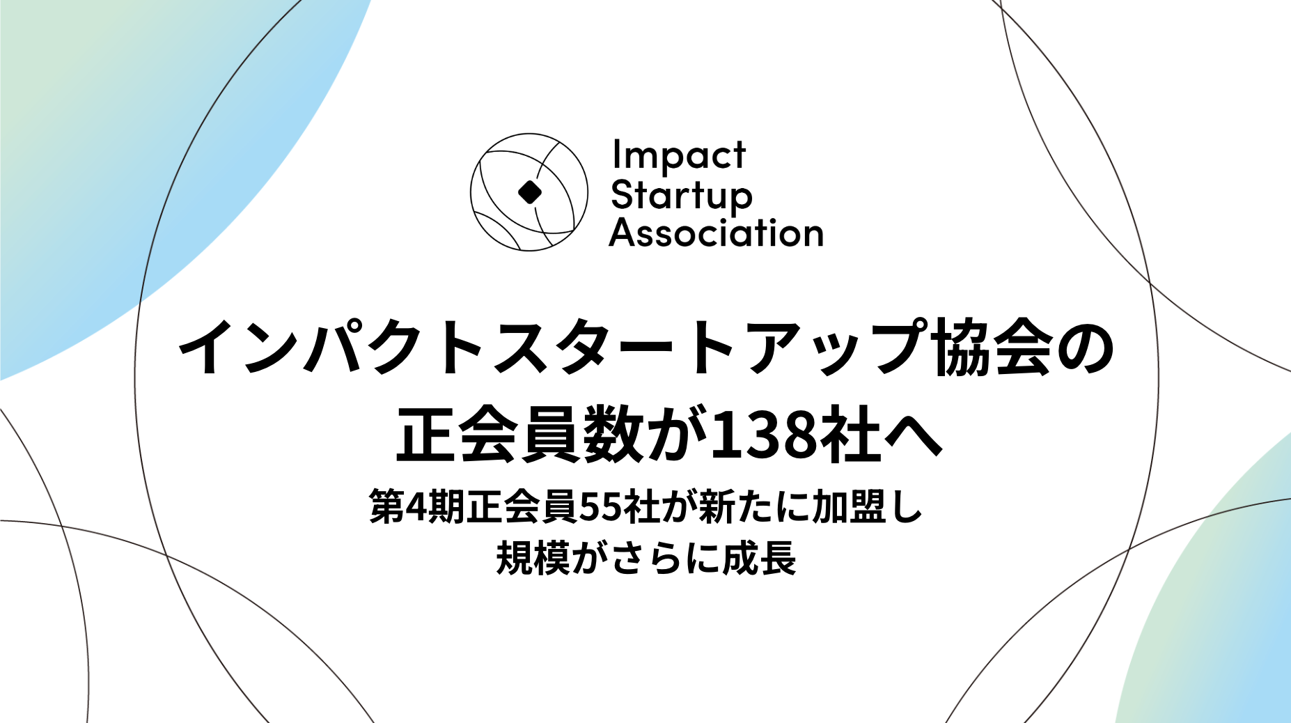 インパクトスタートアップは、「社会課題の解決」と「持続可能な成長」の両立を目指す企業体を指します。ISAは、インパクトスタートアップエコシステムを構築し、持続可能な社会の実現を目的とし、2022年10月14日に設立いたしました。政財官と協働し、より良い社会を創出するためのポジティブ・インパクトを与えるスタートアップが数多く生まれ、継続的に成長していく環境を作ることを目指し、「共有」「形成」「提言」「発信」の4つの柱で活動を実施しています。現在、協会のパーパスに共感し正会員として活動を共にするインパクトスタートアップ企業は138社、活動趣旨に賛同いただきインパクトエコノミーの拡張を支援する賛同会員は、日系・外資系企業を含め11社となりました。