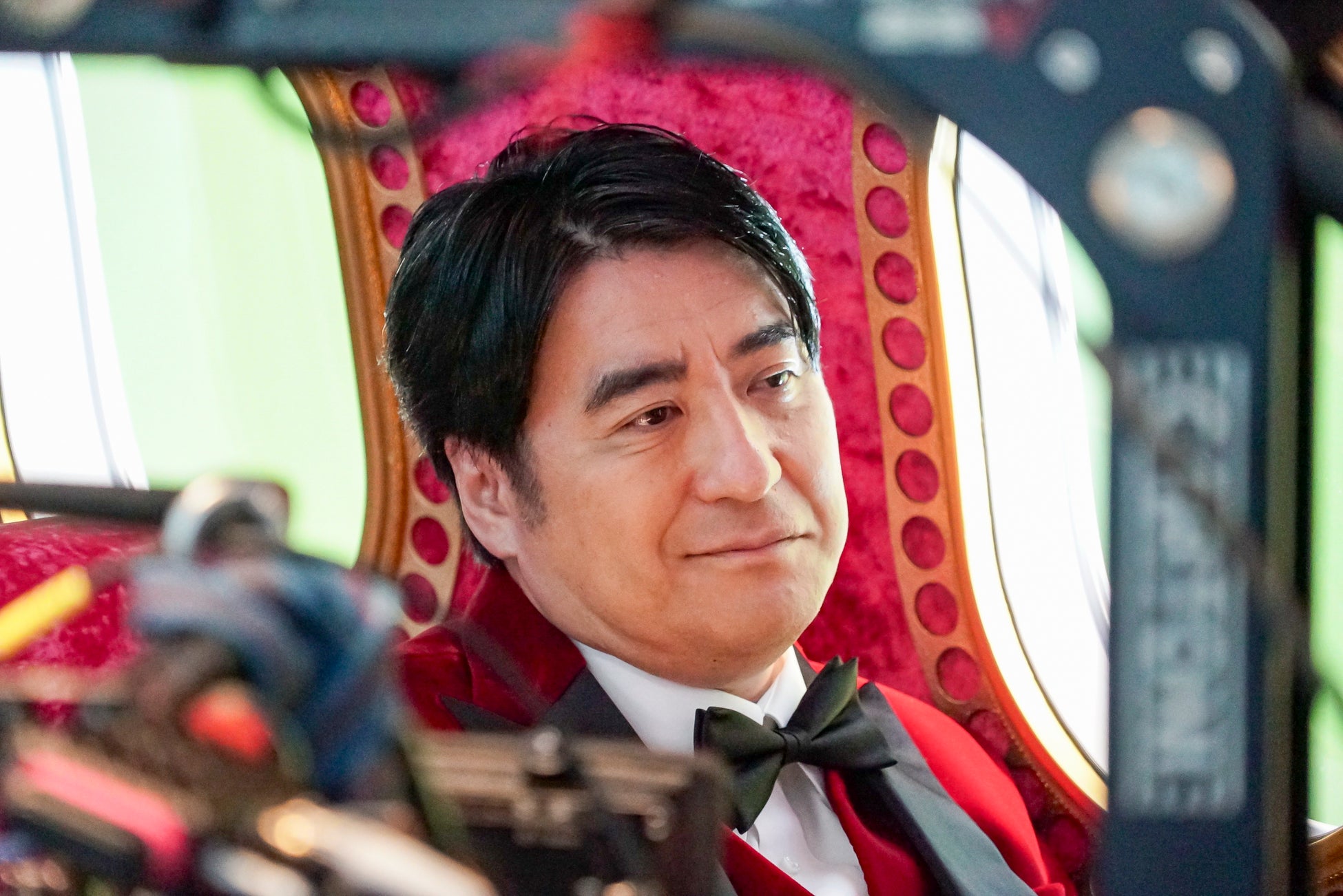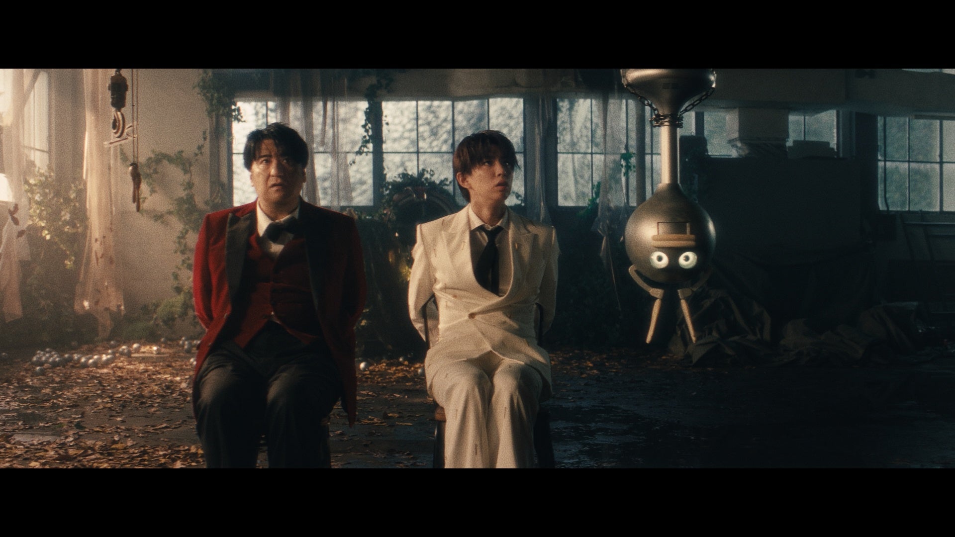 「PACHI-PACHI-7」のメンバーである、はじめしゃちょーさん、佐久間宣行さん、ビッグクラッピーは前作に続いての出演で、すでにリムジン内のシーンでも共演していたため和気あいあいとした雰囲気でした。佐久間さんがYouTubeでも活躍していることもあり、その分野で“先輩”となるはじめしゃちょーさんと話が弾んでいる様子。今作は大規模な美術セットが用意され、大人数のスタッフが関わっている撮影だったため、イスに拘束されたままの待ち時間にも「映画みたいでヤバいね」と話していました。