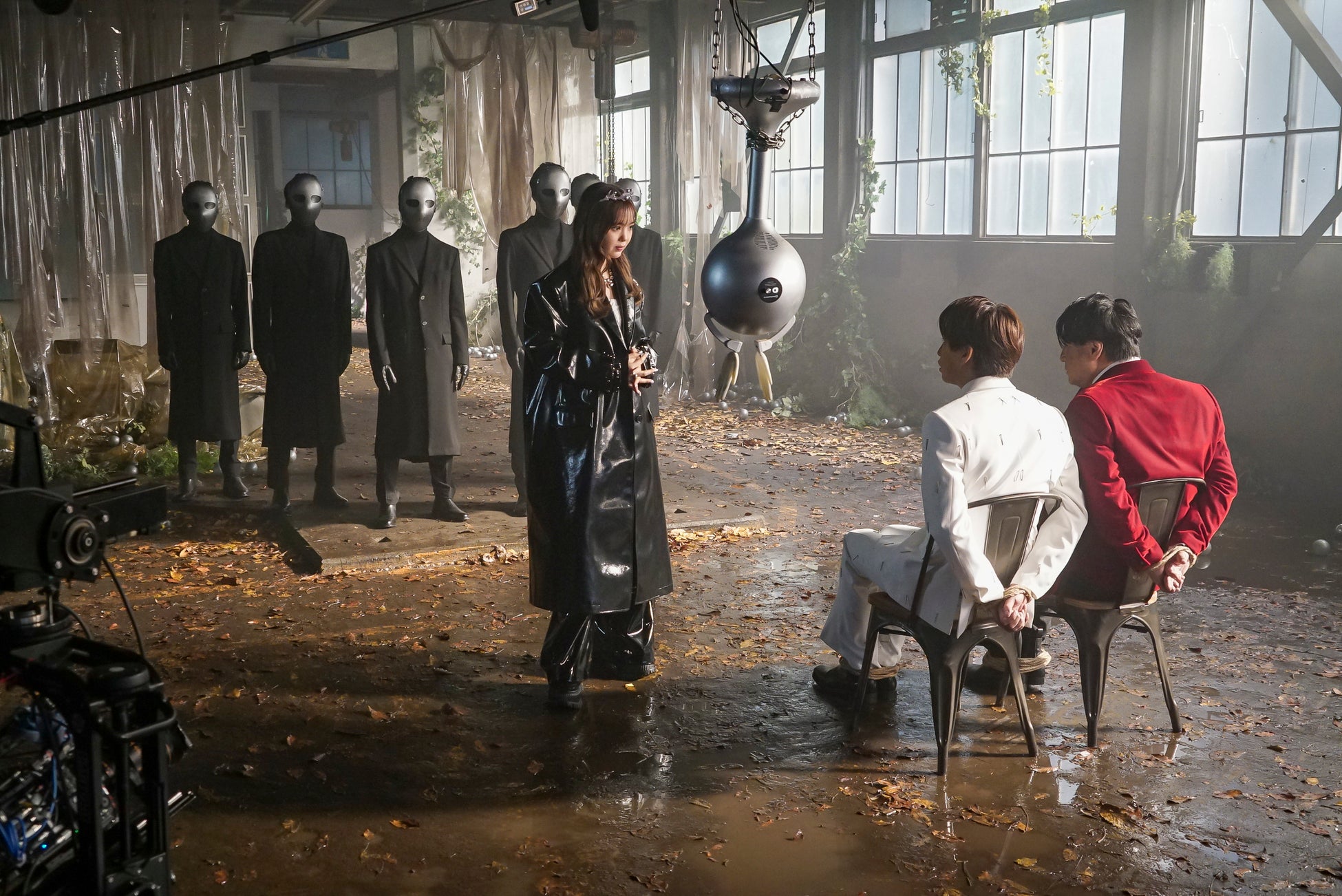 「PACHI-PACHI-QUEEN」登場シーンの撮影で、ニコルさんとはじめしゃちょーさん、佐久間さんがいよいよ対面。すでに全員が役に入り込み、はじめしゃちょーさんと佐久間さんは手を縛られている状態のため、初共演の挨拶も軽い会釈程度で終え、すぐに撮影本番がスタート。撮影後、ニコルさんは「長い時間、縛られた状態にさせてしまって申し訳ないです」とふたりを気遣い、佐久間さんは「『“N”がついに登場したか』って怖い感じでした(笑)」と笑いながら話していました。
