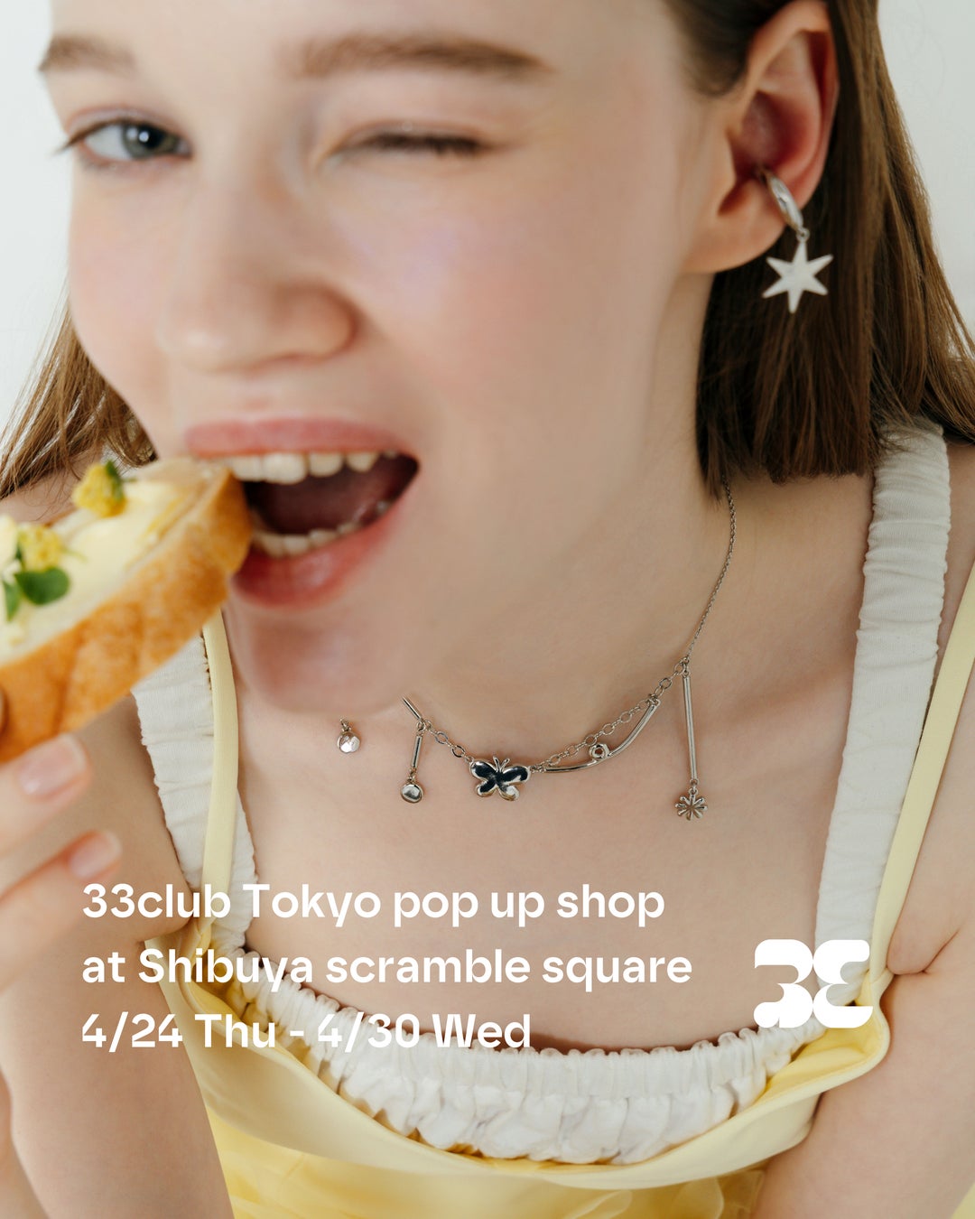 アクセサリーブランド・33club(スリースリークラブ)が4月24日(木)から4月30日(水)まで、東京・渋谷スクランブルスクエアにて、pop up shopを開催します。