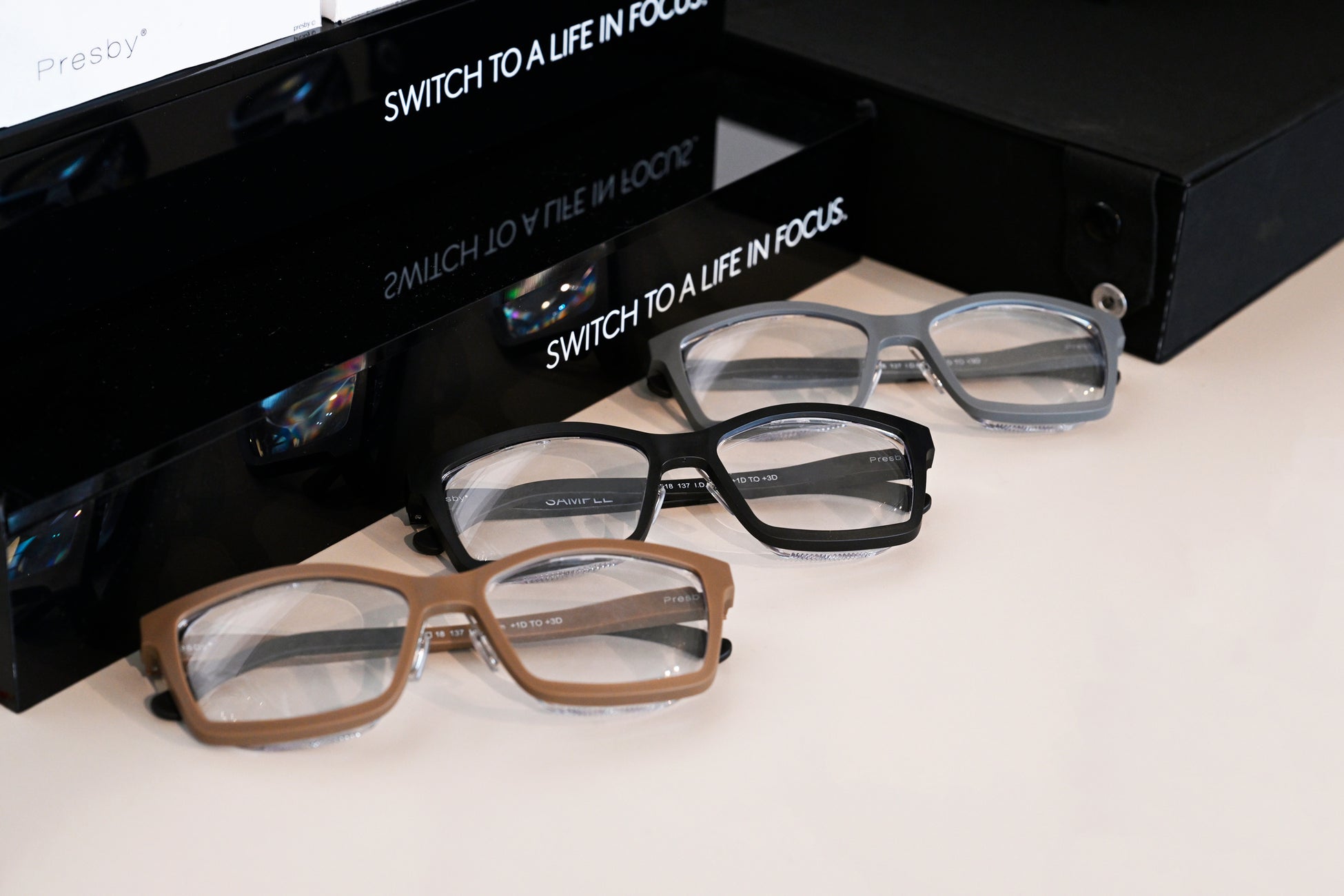 視界は人にとって最も大切な五感の一つであり、視力の変化によるストレスは日常生活に大きな影響を与えます。従来のメガネでは解決できない視力の変動に対応するため、イギリス・オックスフォードのレンズ開発企業とプロジェクトチームを立ち上げ、約3年の開発期間を経て、新しいタイプの度数調節リーディンググラスを開発しました。