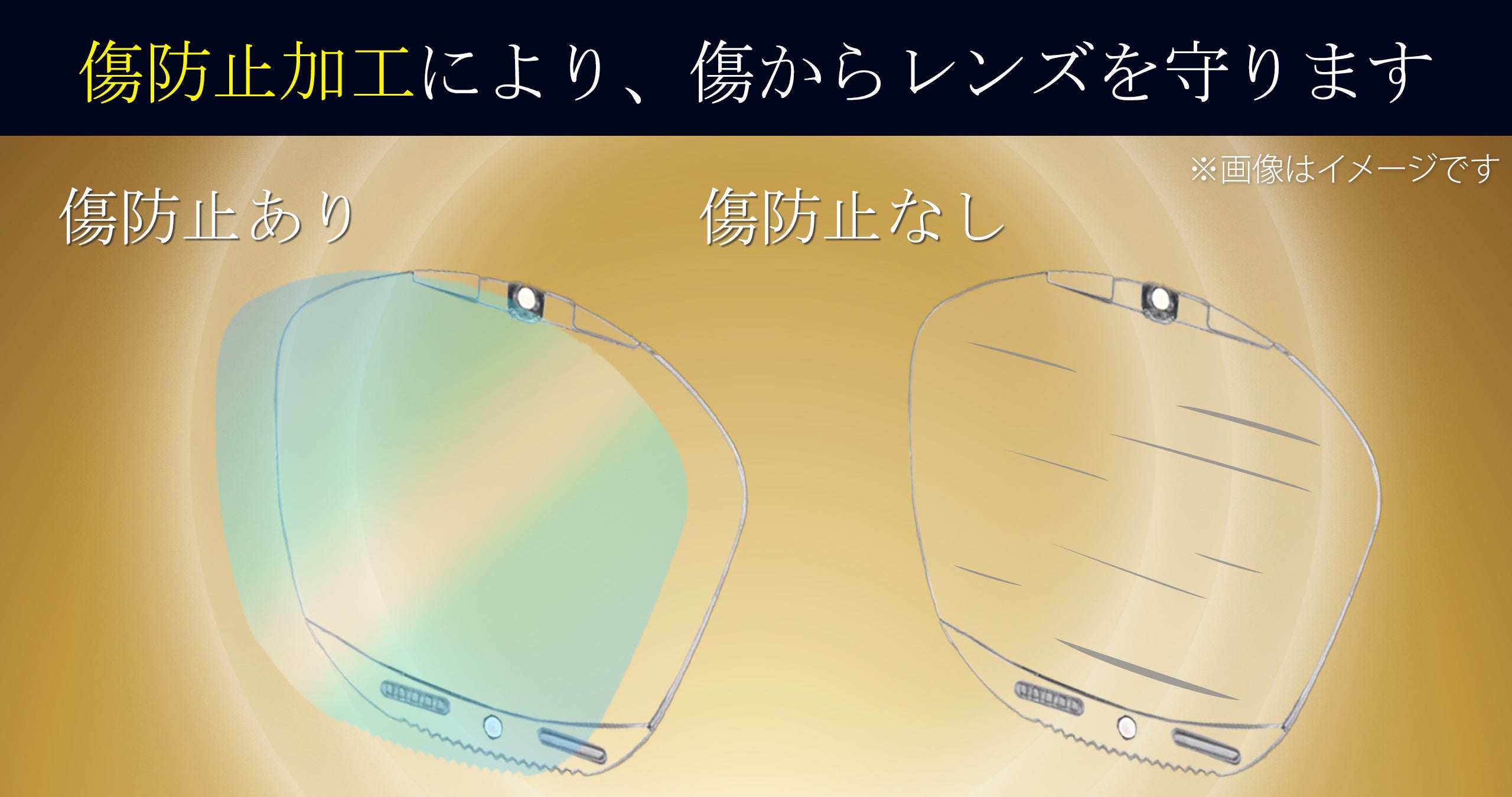 さらに、レンズには傷防止加工が施されているため、日常の使用でも安心してご利用いただけます。