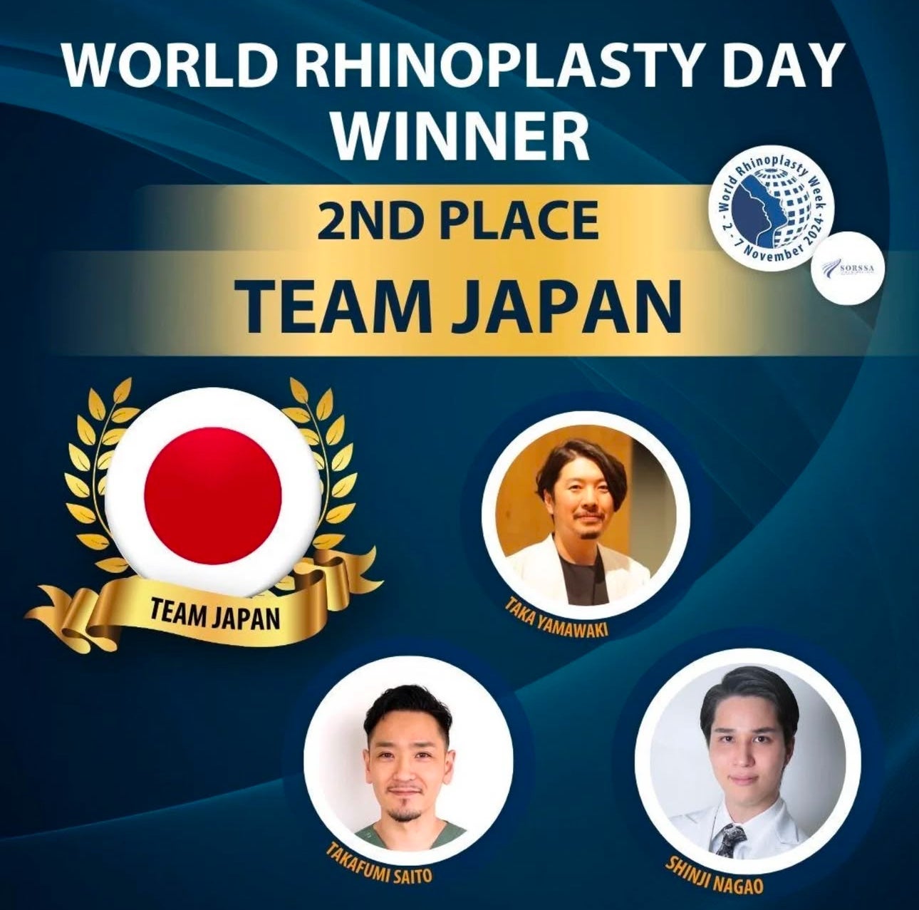 ・2024年、世界的鼻形成学会「WRD2024(WORLD RHINOPLASTY DAY)」でTEAM JAPANとして「忘れ鼻(wasurebana)」をテーマに発表し、世界2位を受賞