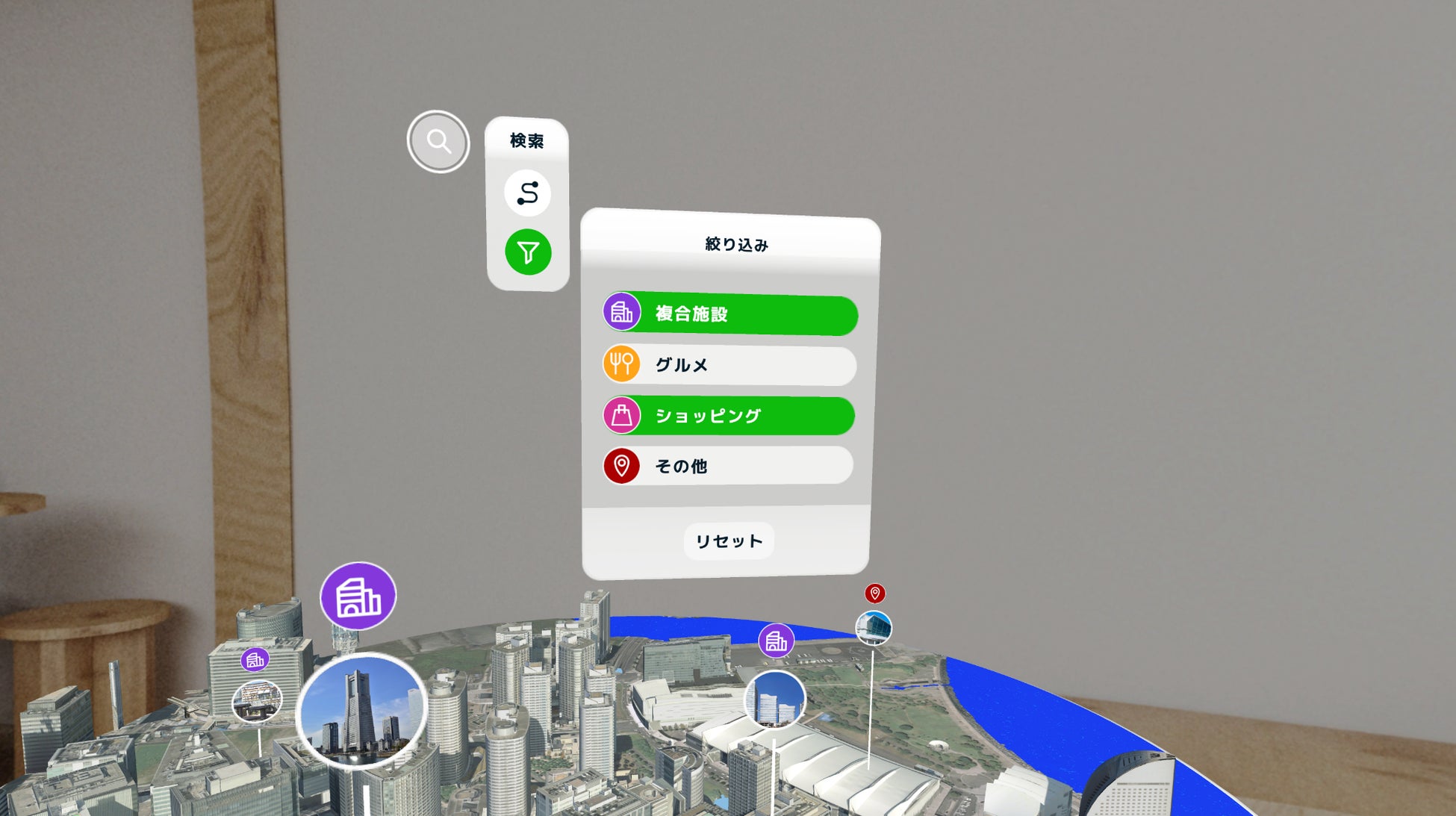 ユーザーが関心のあるジャンルのスポットのみを表示する絞込み機能もあります。飲食店を探したい、ショッピングできる施設を見つけたい場合などのニーズに応じて、簡単に絞込みが可能です。これにより、効率的かつ楽しく都市を探索できます。