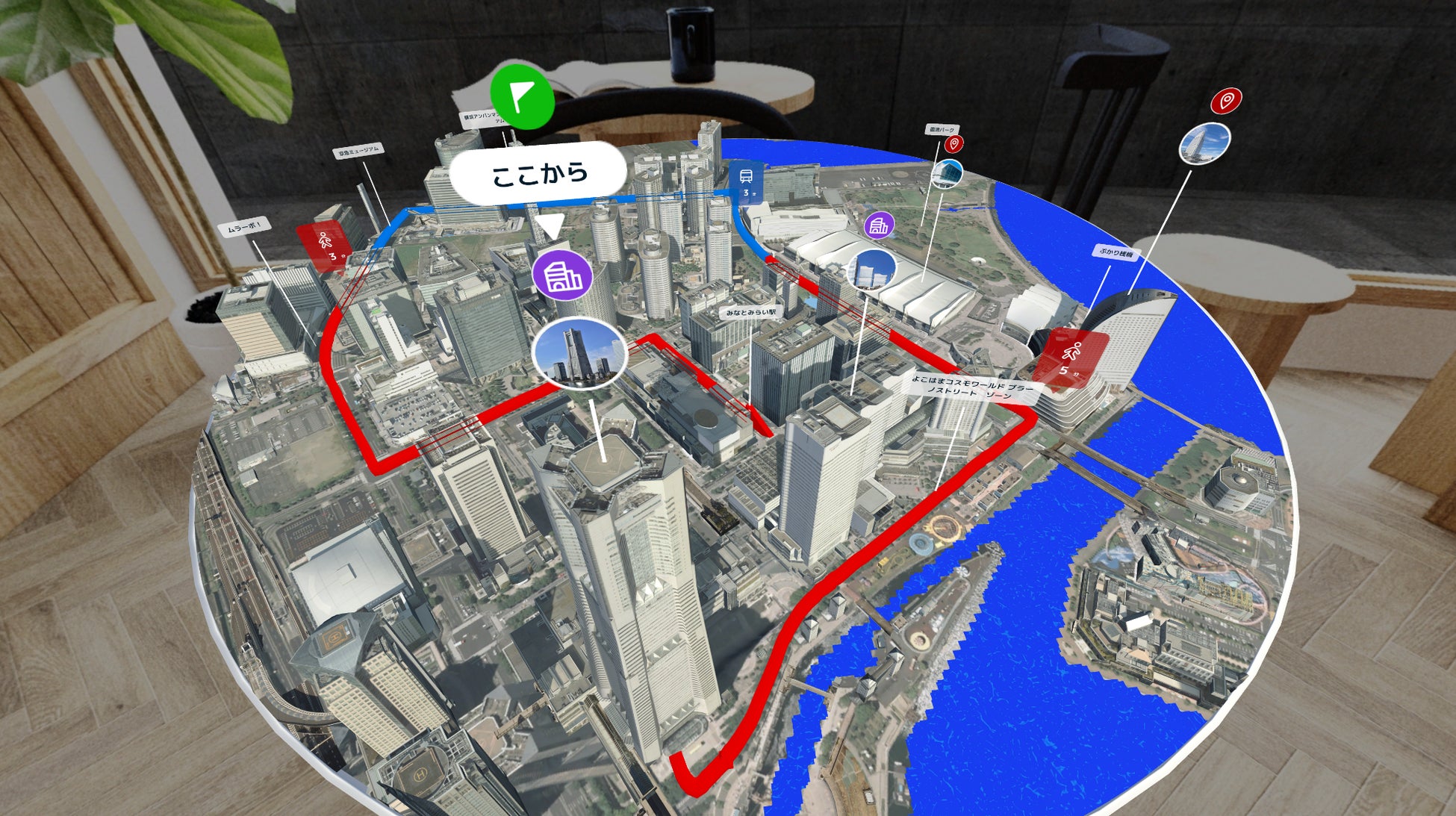 ① 3Dジオラマ上で都市を散策