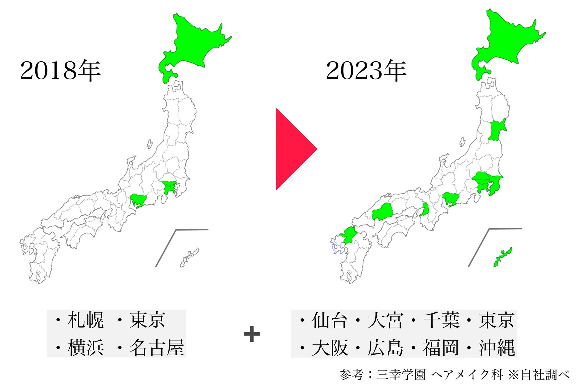 ヘアメイクアーティストを目指しながら美容師免許を取得できる「ヘアメイク科」を設立する美容専門学校が、ここ5年で大きく増加しています。