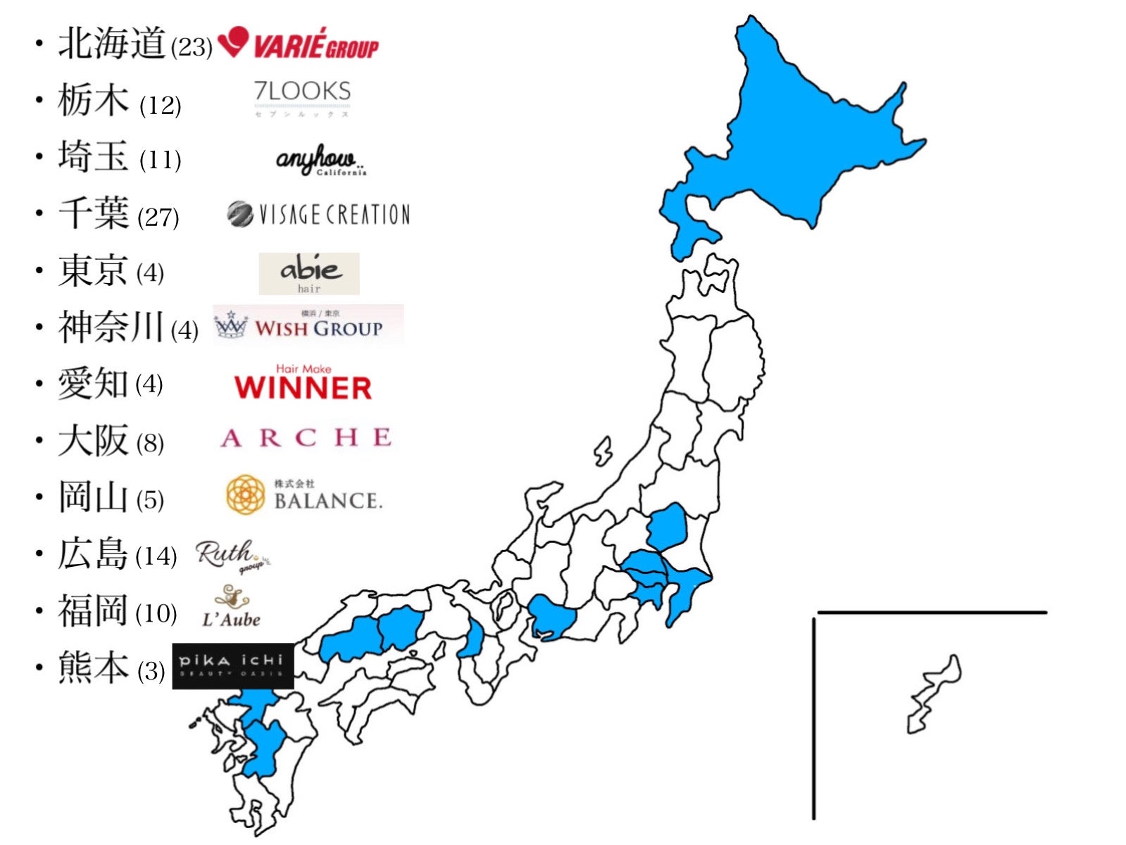 現在、ヘアメイク科を設立した美容専門学校がある都道府県を中心に、全国12社125店舗の美容サロンと提携し、ヘアメイク師の育成・輩出に取り組んでいます。今後、全国47都道府県にパートナーサロンを最低1社作っていくことを中期目標とし、美容人材が活躍できる環境作りに挑戦中です。