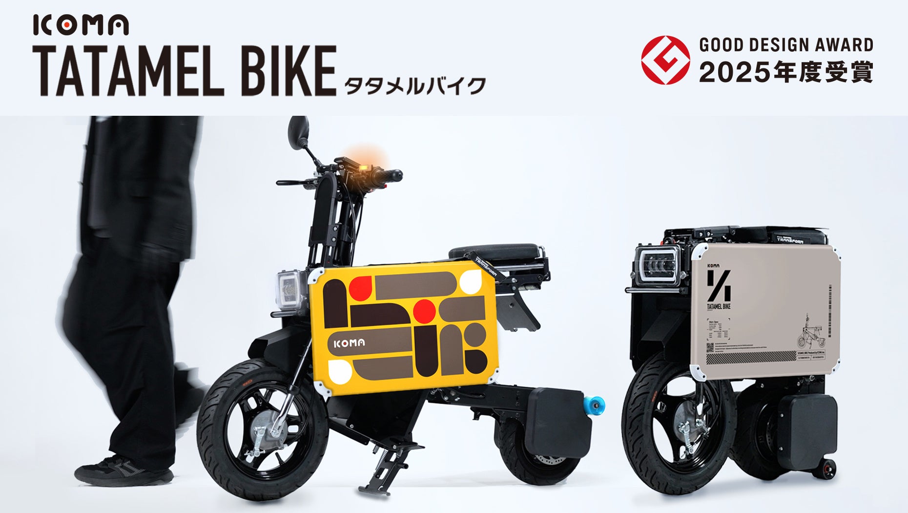 株式会社ICOMA (本社:東京都大田区、代表取締役社長 : 生駒崇光)は、折りたたみ電動バイク「ICOMA タタメルバイク」が、『2025年度 グッドデザイン賞』(主催:公益財団法人 日本デザイン振興会)の「私の選んだ一品 2025」を受賞したことを発表します。