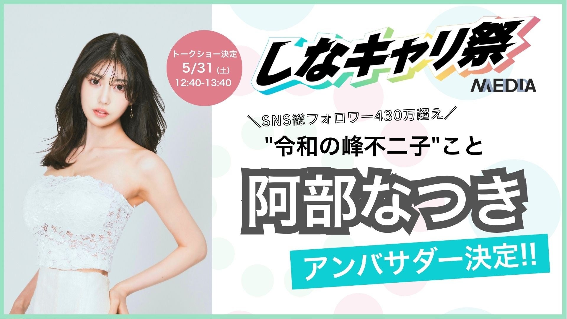 【“令和の峰不二子”阿部 なつき、合同就職説明会の公式アンバサダーに就任!】「しなキャリ祭」2025年5月31日、6月1日開催
