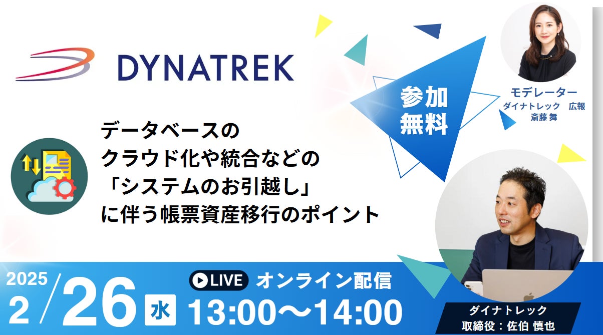 本セミナーでは、当社が蓄積してきた事例を基に、データベースのクラウド化など、データ基盤移行の際に必ず課題となる「帳票資産のお引越し」にスポットを当て、円滑な資産移行のために抑えるべきポイントをご紹介いたします。