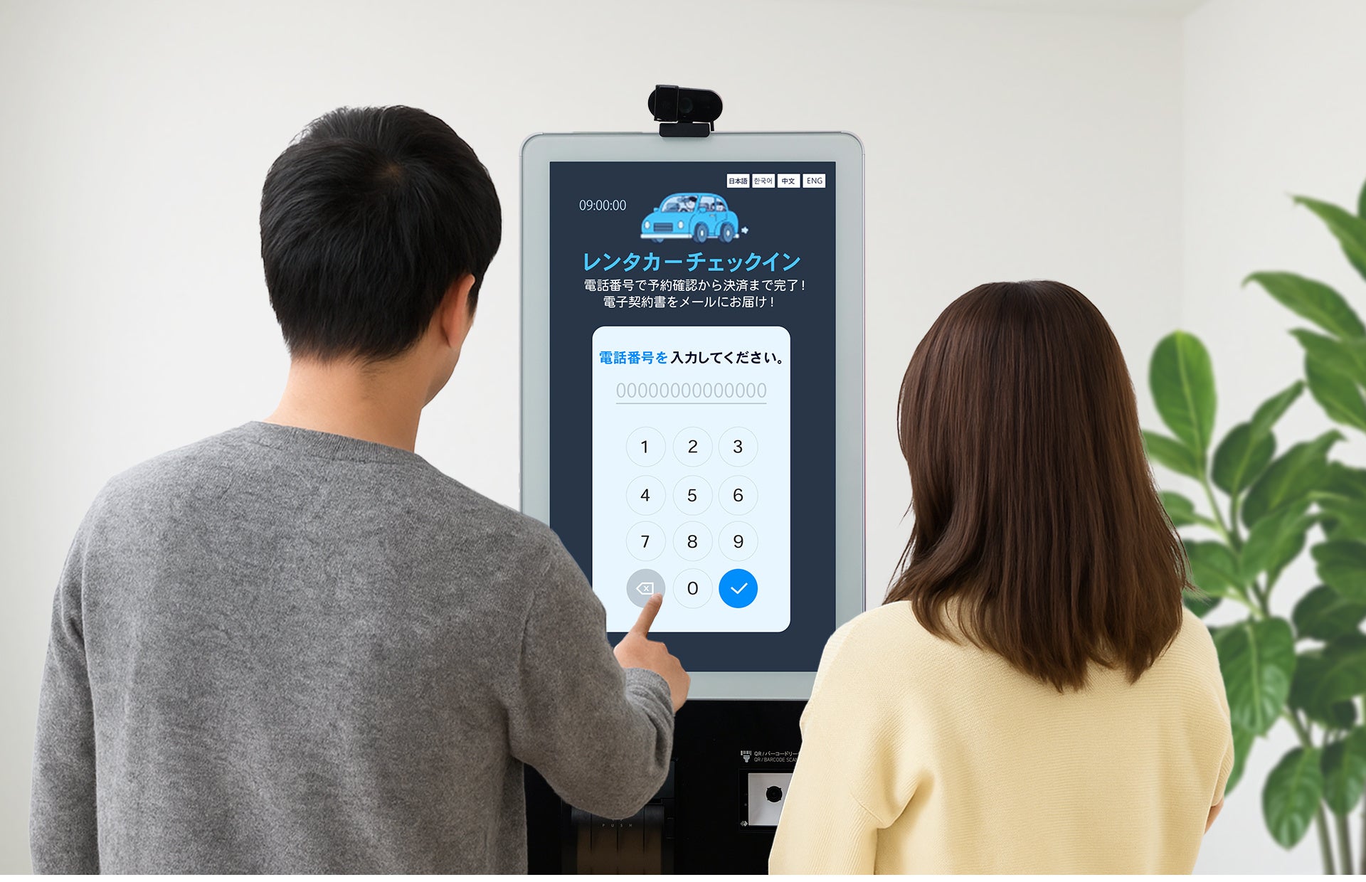 また、多言語機能(英語・中国語(繁体字)・韓国語)を備え、レンタカー受付業務の効率化と省人化をサポートします。