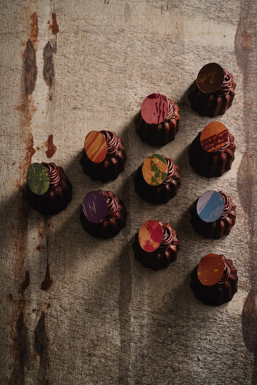 カカオハスクを漬け込んだ洋酒を使ったカヌレに自社農園や世界各地のカカオで作られたFARM to BARショコラのガナッシュを合わせました。