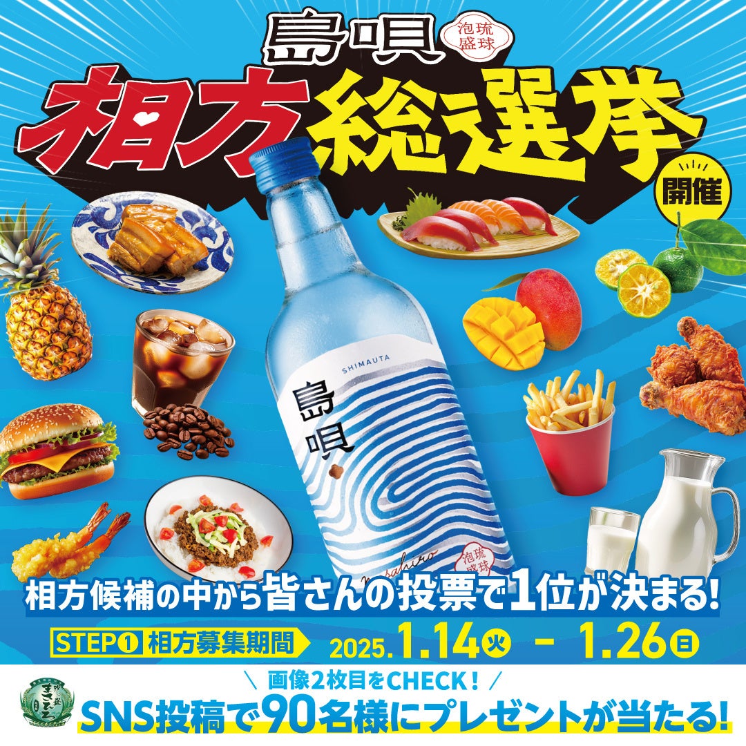2025年1月14日(火)〜1月26日(日)の期間で相方募集!!「#島唄相方総選挙」をつけて泡盛「島唄」に合う相方候補を投稿すると島唄オリジナルグッズなどが当たるプレゼントキャンペーンも開催!