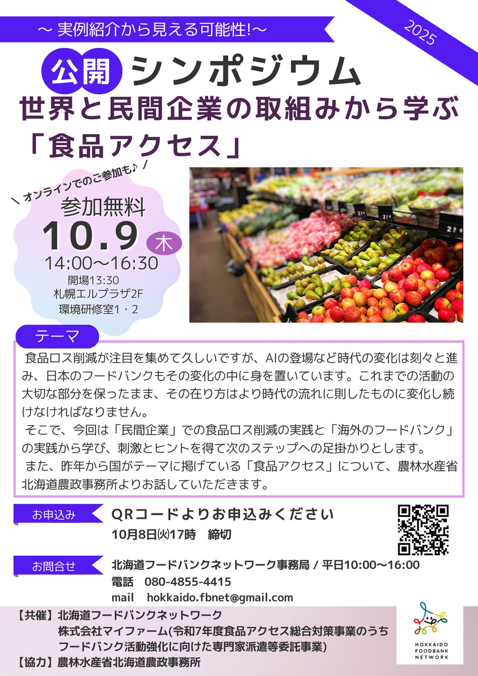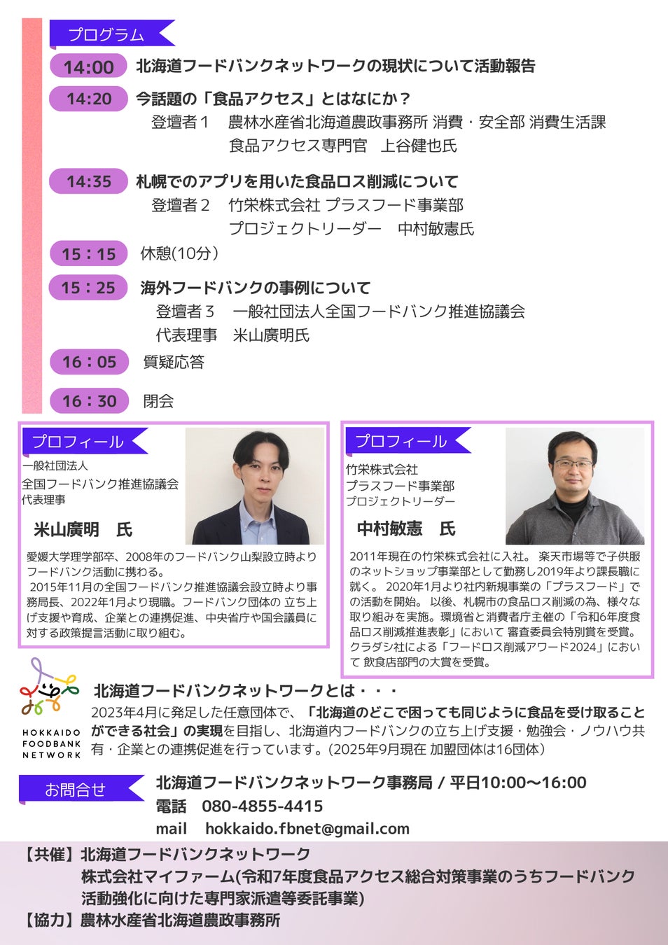 リアル&オンライン開催!北海道フードバンクネットワークと株式会社マイファームの共催 10月9日 in札幌エルプラザ(協力:農林水産省北海道農政事務所)