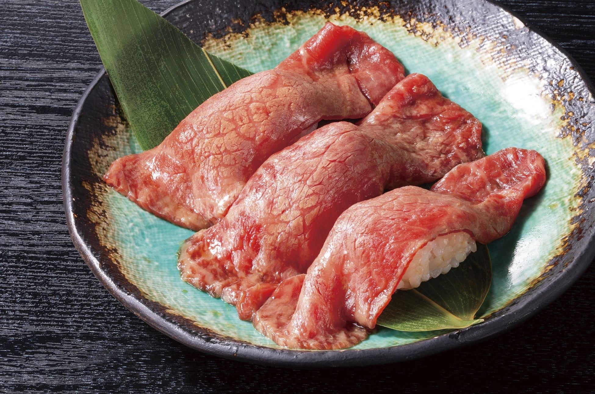 上から「神戸牛炙り握り3貫990円(税込1,089円)」「神戸牛スジ赤ワイン煮込み690円(税込759円)」「炙りバゲットアイス490円(税込539円)」。これらの商品を100円引でお召上がりいただけるクーポンも配布します。
