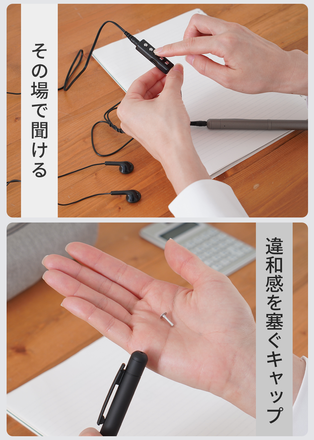 ペン本体は録音のみの機能で、再生はリモコンとイヤホンを使って再生が可能です。