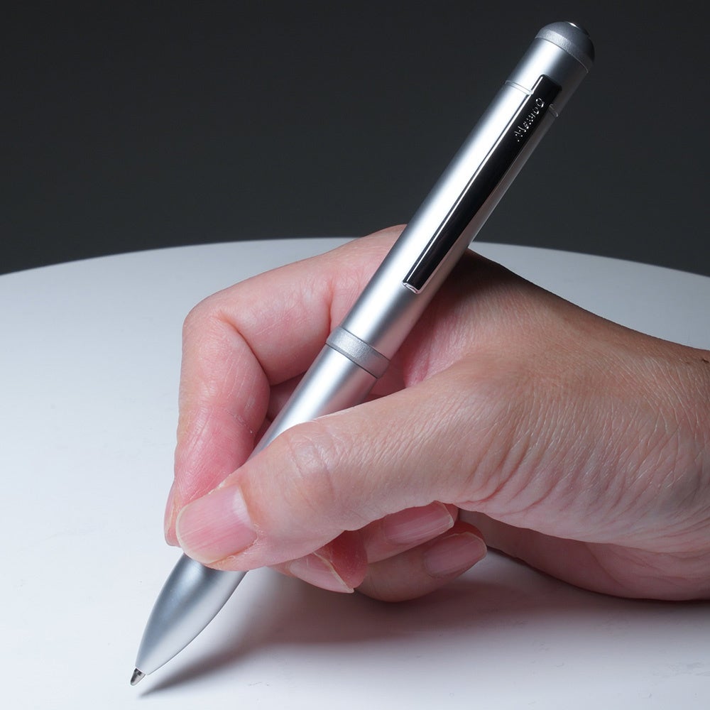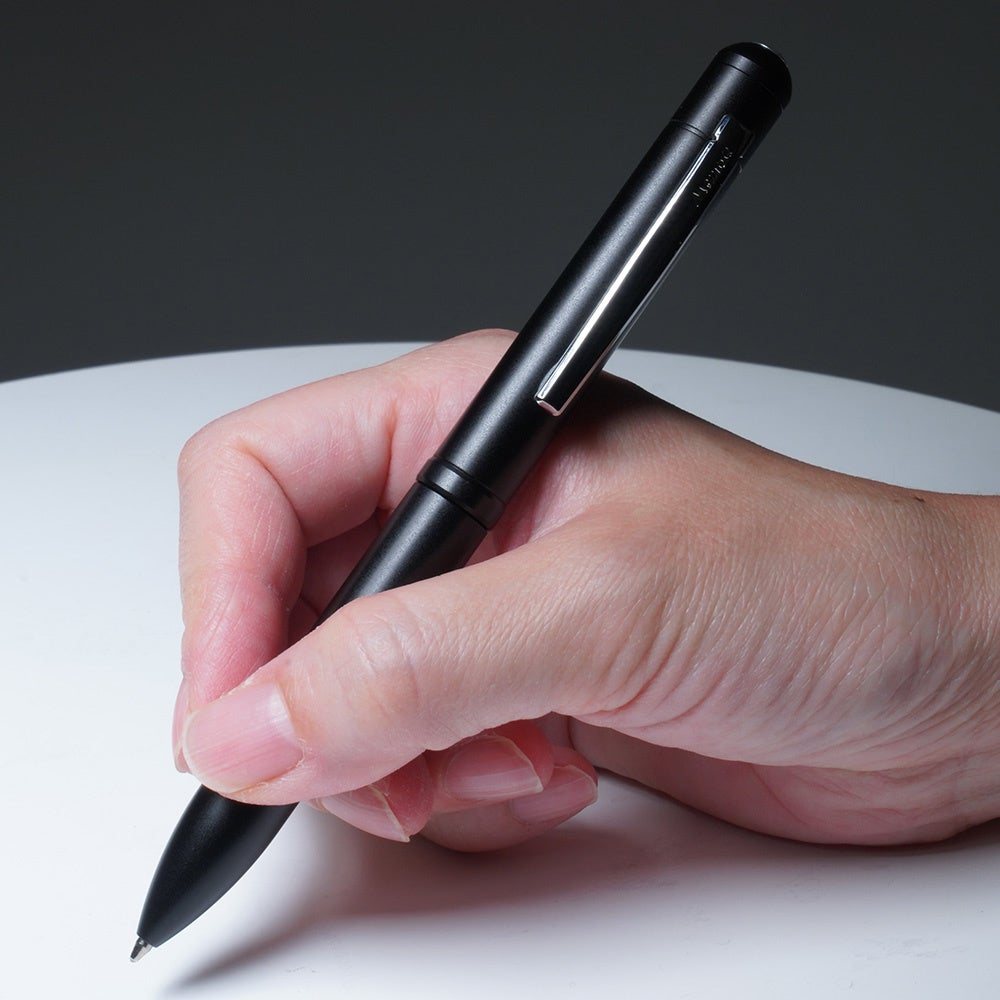 録音して残す。書いて残す。この2つ“記録”と“記憶”をテーマに開発された、ペン型ボイスレコーダーの本来の目的は録音。だけでなく、筆記用具であることを重視してボールペンであることに重点を置いたデザイン、仕上げをいたしました。