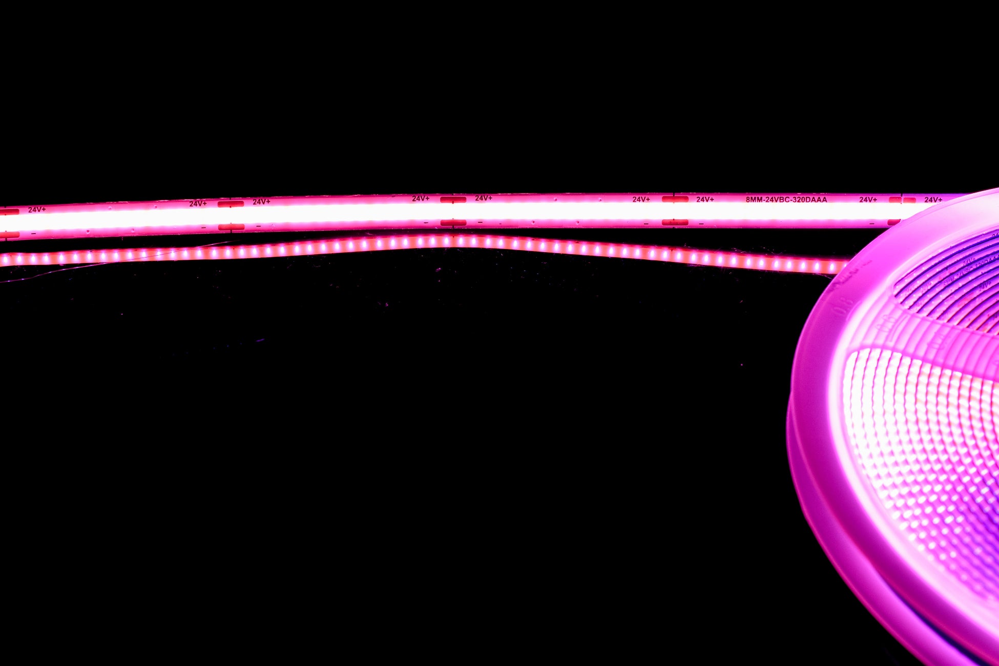 高輝度: 一つのCOBチップが大量のLEDを含むため、COBテープライトは通常のLEDテープライトよりもはるかに高い輝度を提供します。