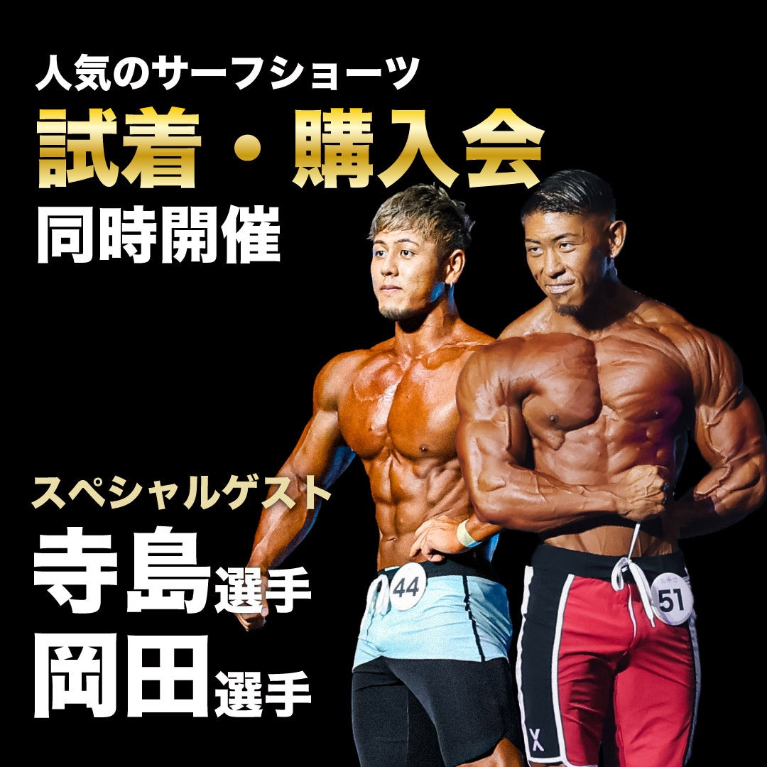 トップフィジーカー「寺島 遼」選手や「岡田 涼平」選手にVEATM特設サーフショーツブースにお越しいただきます。特設パネルを設置し、フォトセッションイベントを開催します。11月26日(日)VEATM PRESENTS JAPAN PRO 2023に出場予定の両選手、貴重な体験を是非この機会に体感くださいませ。サーフショーツを見て触って試着出来る機会は少ない為、是非この機会にVEATMサーフショーツをお試しください。発売直後に即売してしまった人気サーフショーツも一部復活販売の予定です。当時手に入らなかった商品がお得に手に入れられるこの機会をお見逃しなく!
