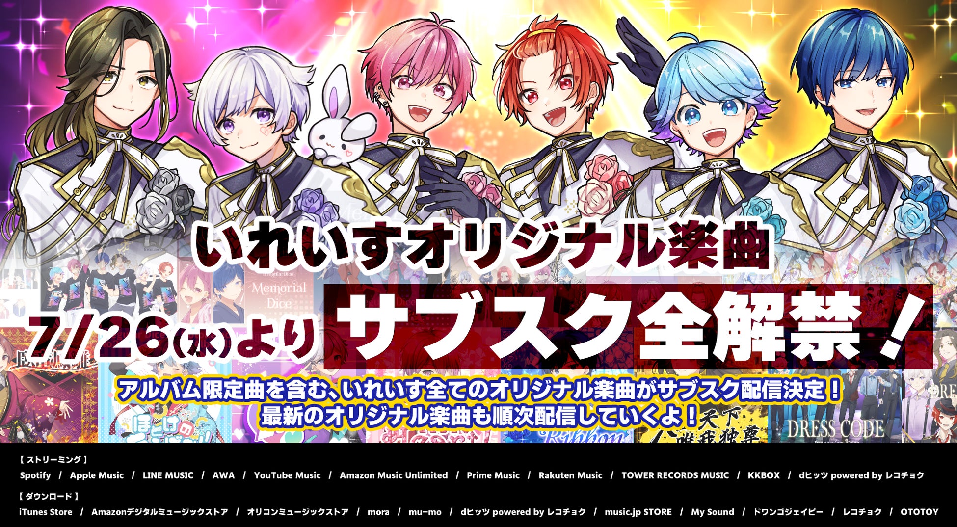 YouTubeチャンネル登録者数60万人突破アルバム限定曲やCD未収録曲が聴ける!2.5次元アイドル「いれいす」がサブスク楽曲を追加提供