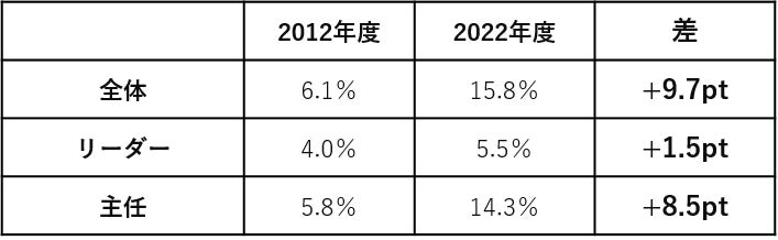 ●総合職における階層別の女性比率(2012年・2022年比較)