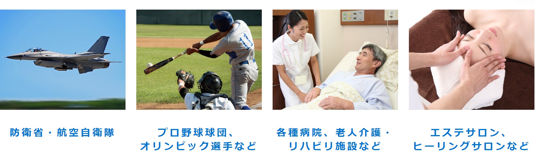 代替え療法として導入するケースも多く、眼科医院をはじめとした医療機関、介護・リハビリ施設、エステサロン、さらに、目を酷使する業務を担う、会計事務所や税理士事務所などでも広く利用されています。