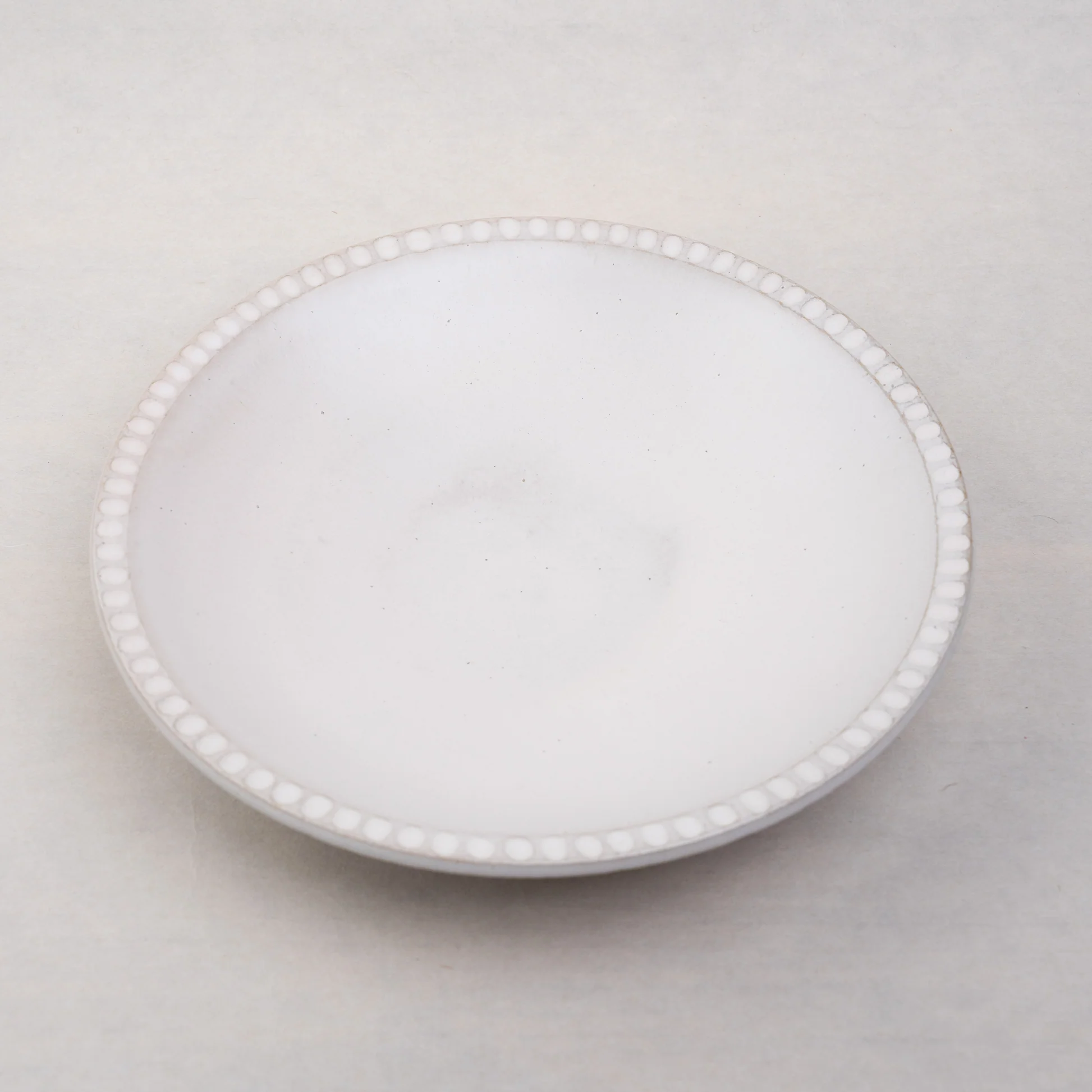 料理の取り皿などにも使いやすいうつわ。白い土と釉薬の変化を楽しむことができる逸品です。