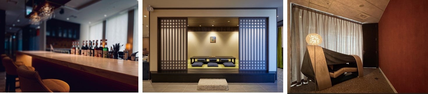 共有スペースには、応接対応も可能な会議室の他、客人を華やかに迎えられるラウンジ・バーカウンター、最新のマッサージチェア付きのリラクゼーションスペースなどを完備しています。洗練された世界観とこだわりの機能設備が融合したオフィス環境は、あらゆるオフィス施設の中でもトップクラスのクオリティを再現しており、この世界観と機能美が、入居者のモチベーションや来客者からの印象の向上をもたらしてくれます。