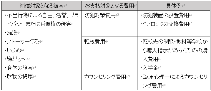 ※いじめ、嫌がらせ、ストーカー行為等の被害については、警察へ提出した被害届等によって、その事実を客観的に証明できる場合に対象となります。