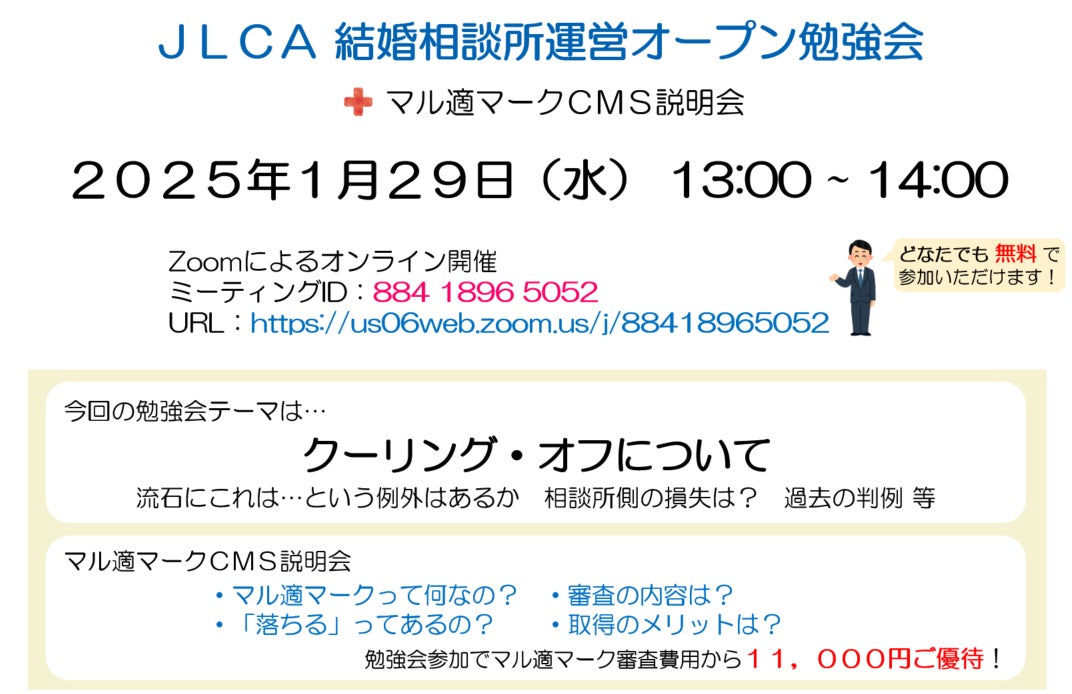 【マル適マークCMS新規認証発行のお知らせ】特定非営利活動法人 日本ライフデザインカウンセラー協会(JLCA)が新たにマル適マークCMSを結婚相談所に発行しました!