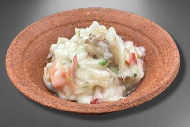 いぶりがっことホッキガイ、ヒトエグサを組み合わせ、彩り豊かな和え物に仕上げた商品です。小鉢やお弁当としてそのまま使用するのはもちろん、マカロニやショートパスタに和えることで、手軽にアレンジメニューが作れます。解凍後、そのままお召し上がりいただけます。