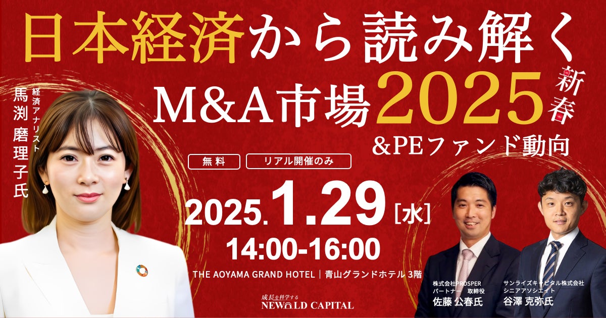 成長戦略実現ファームとして、M&A・成長支援や経営人材紹介、M&Aの教育・研修事業を展開する株式会社NEWOLD CAPITAL(本社:東京都渋谷区、代表取締役CEO:栗原 弘行、以下「NEWOLD」及び「当社」)は、新春セミナー「日本経済から読み解くM&A市場&PEファンド動向2025」を開催いたします。