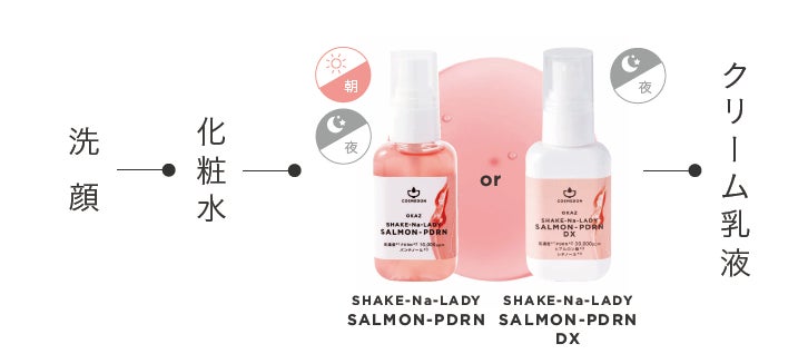 発売から多くのお客様にご使用いただき、お客様の声をもとに、濃度や美容成分をよりバージョンアップした「シャケナレイディ サーモンPDRN DX」を発売する運びとなりました。