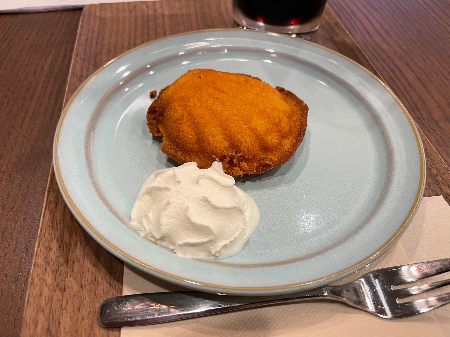 セミナー前に生クリームを添えた『大地のマドレーヌ』をお配りしていただき、簡単な商品の紹介をさせていただきました。