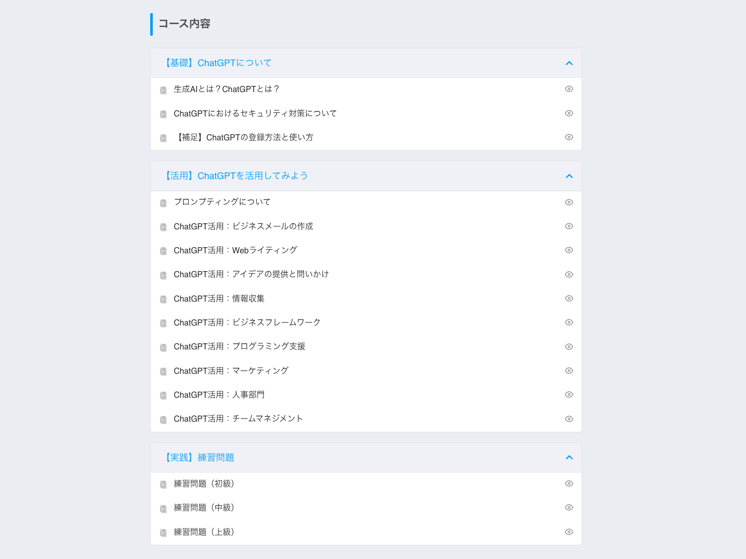 ビジネスメール作成やマーケティング、チームマネジメントなど幅広い業務領域で活用できる内容をカリキュラムに追加しました。