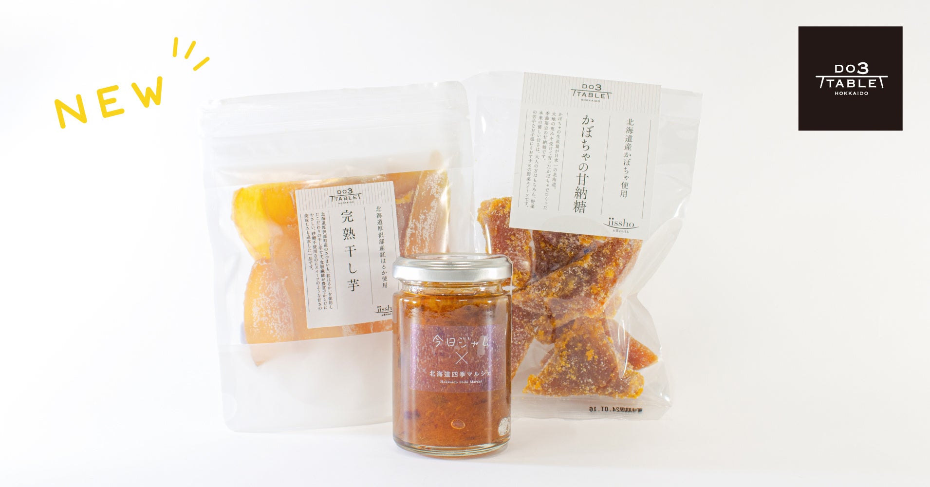 【新商品】『今日ジャム 北海道プルーン』『完熟干し芋』『かぼちゃの甘納糖』2023年12月1日(金)より新発売!【DO3TABLE】