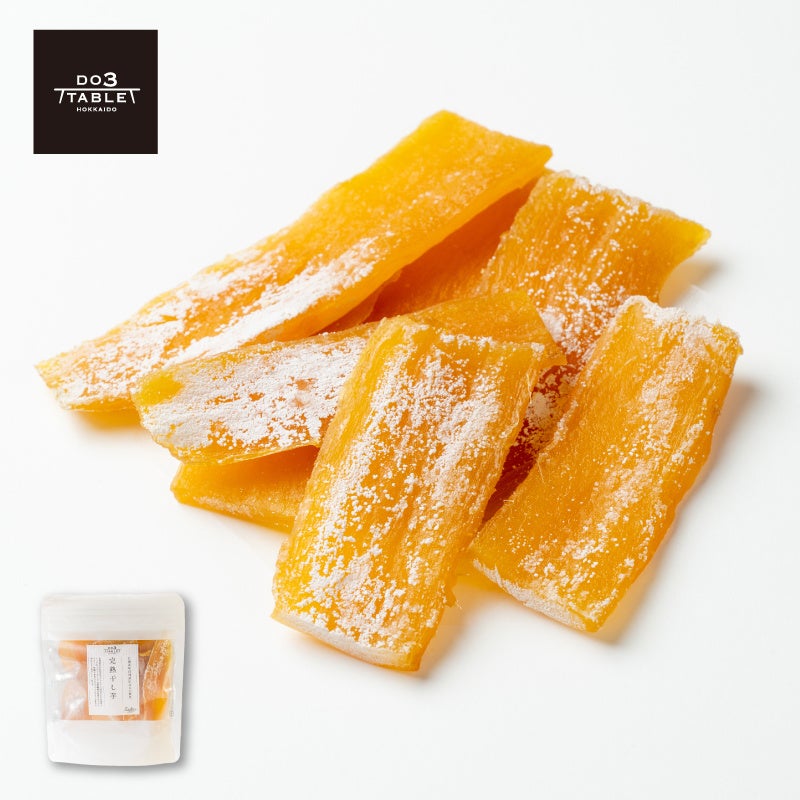 北海道厚沢部町産のさつまいも「紅はるか」を使用したこだわりの干し芋です。砂糖不使用なのにスイーツのような甘さ。からだへのやさしさと美味しさを追求した一品です。