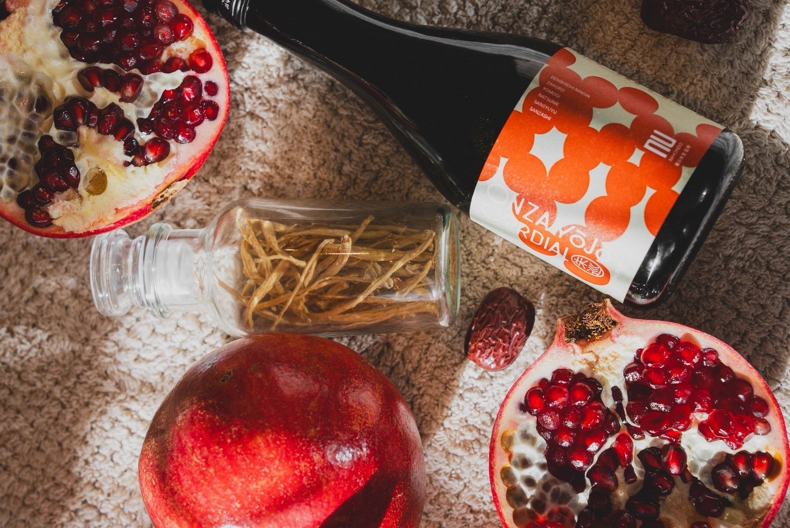 甘酸っぱい果実感と和漢素材の奥行きある味わいで、炭酸や水で割って日中のリフレッシュに、ヨーグルトにかけて朝のひと皿に、お湯で割ってナイトリチュアルに、ノンアルコールカクテルとさまざまなシーンで楽しむことができます。