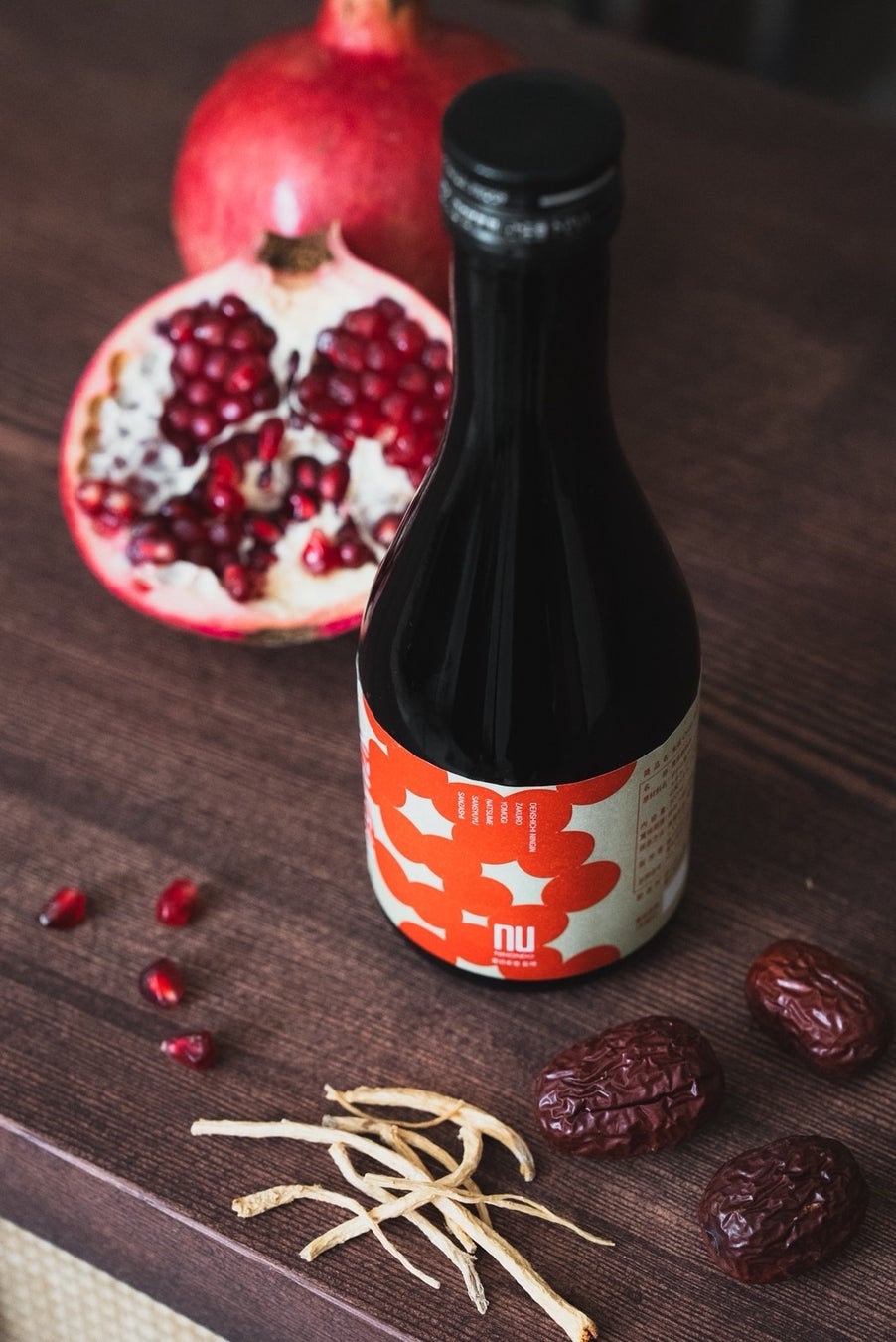 本商品は、ザクロ濃縮果汁をベースに、田七人参・サンシュユ・よもぎ・なつめ・山査子・などをブレンドし、薬日本堂株式会社監修のもとで開発されました。