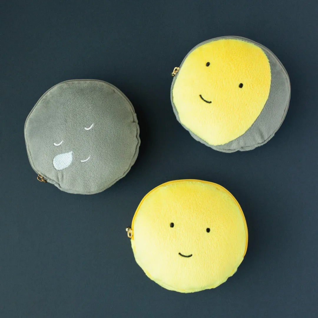 お月くんクッションポーチは持ち運びに便利なミニサイズ。