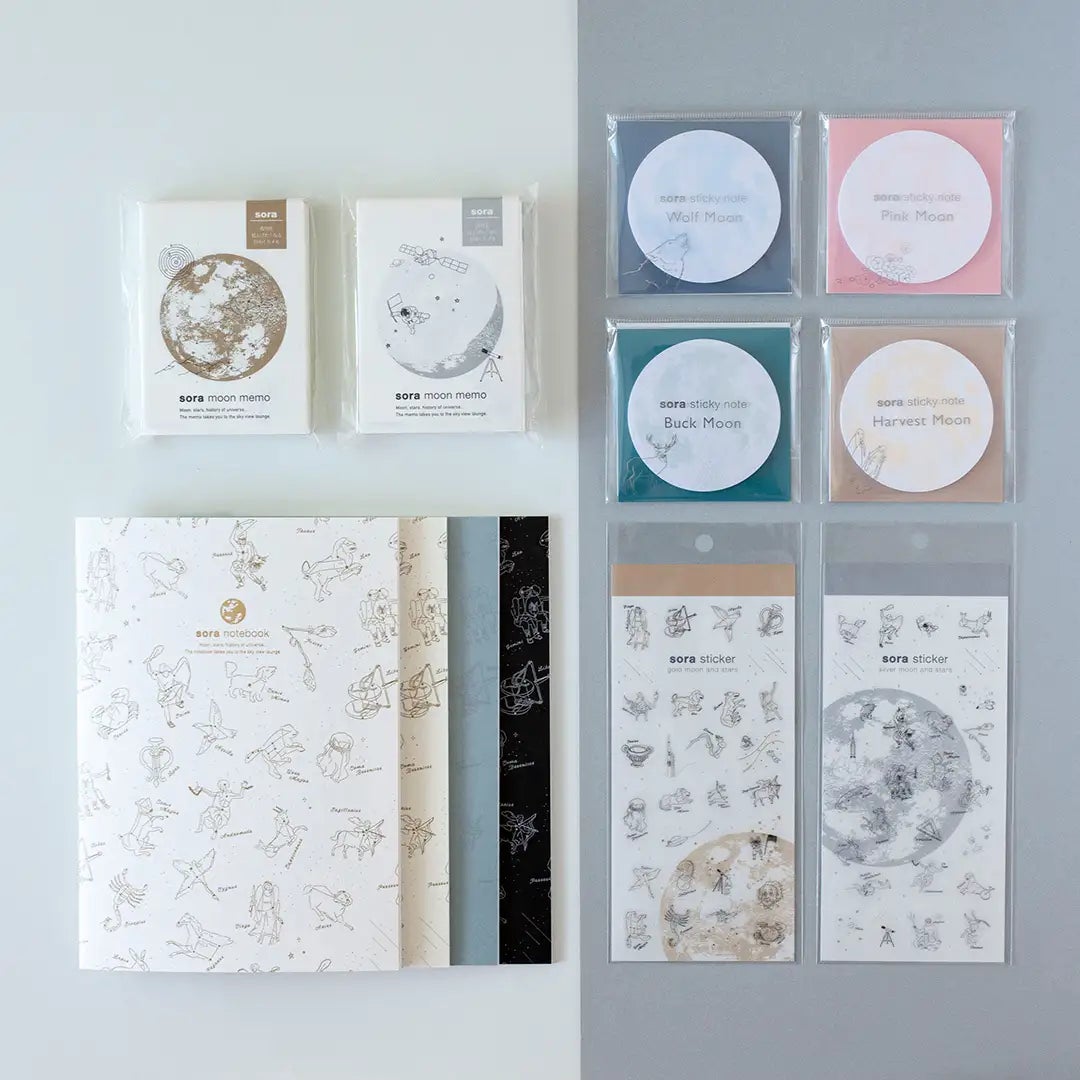 カレンダーの他、「宙(そら)」をテーマにしたメモやシール、ふせん、ノートなどを展開する「宙(そら)のステーショナリー」や、暦生活のキャラクター「お月くん」のグッズも販売いたします。