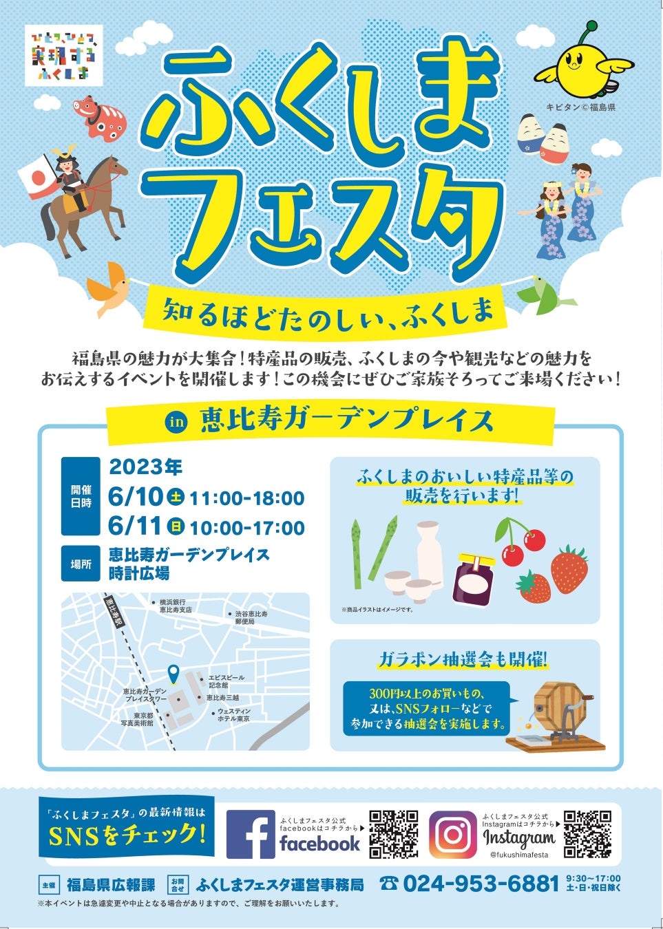 福島県の魅力と復興の今をお伝えする「ふくしまフェスタ」が、2023年6月10日(土)から11日(日)までの2日間、恵比寿ガーデンプレイスの時計広場で開催されます。