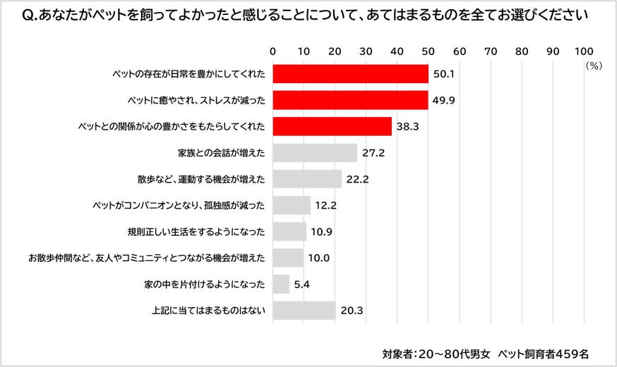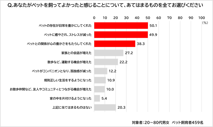 ―「日常が豊かになった」「癒されてストレスが減った」などの精神面の項目が上位に挙がった