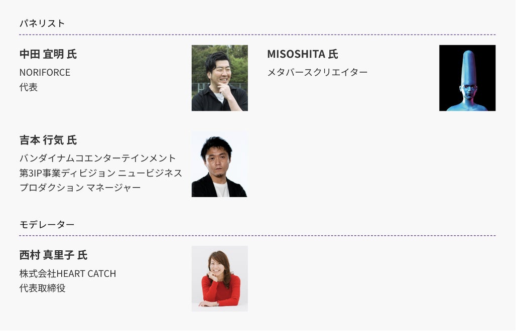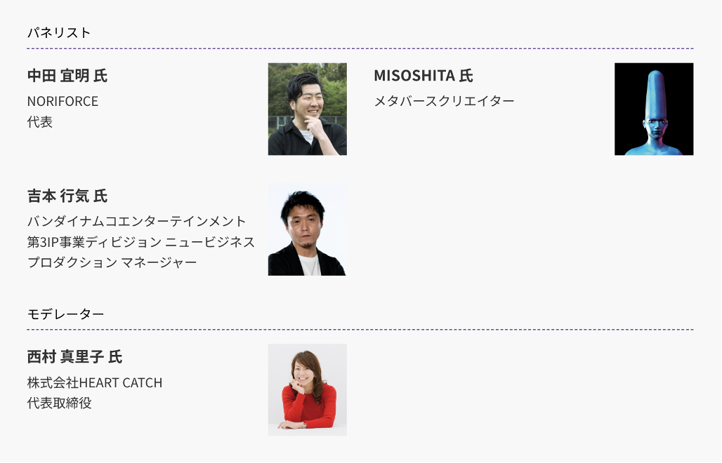 登壇者: 西村真理子/MISOSHITA/NORI/吉本行気