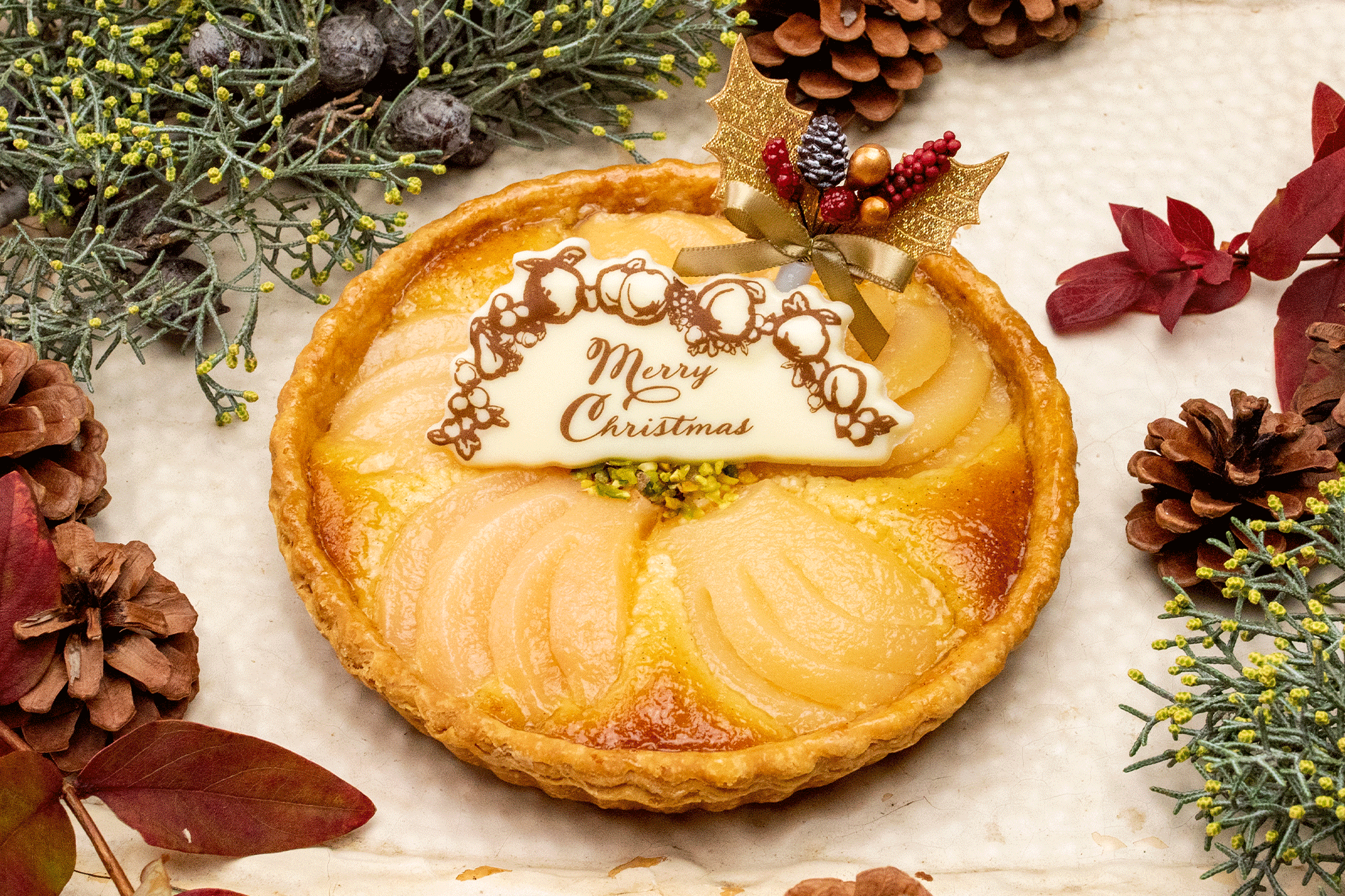 新潟県しろね産“ル レクチエ”(洋梨)のコンポートを、バニラ風味のアーモンドクリームと一緒にじっくりと焼き上げました。「洋梨の貴婦人」と呼ばれる“ル レクチエ”の果汁がしみ込んだ、濃厚でなめらかな味わいのタルトです。